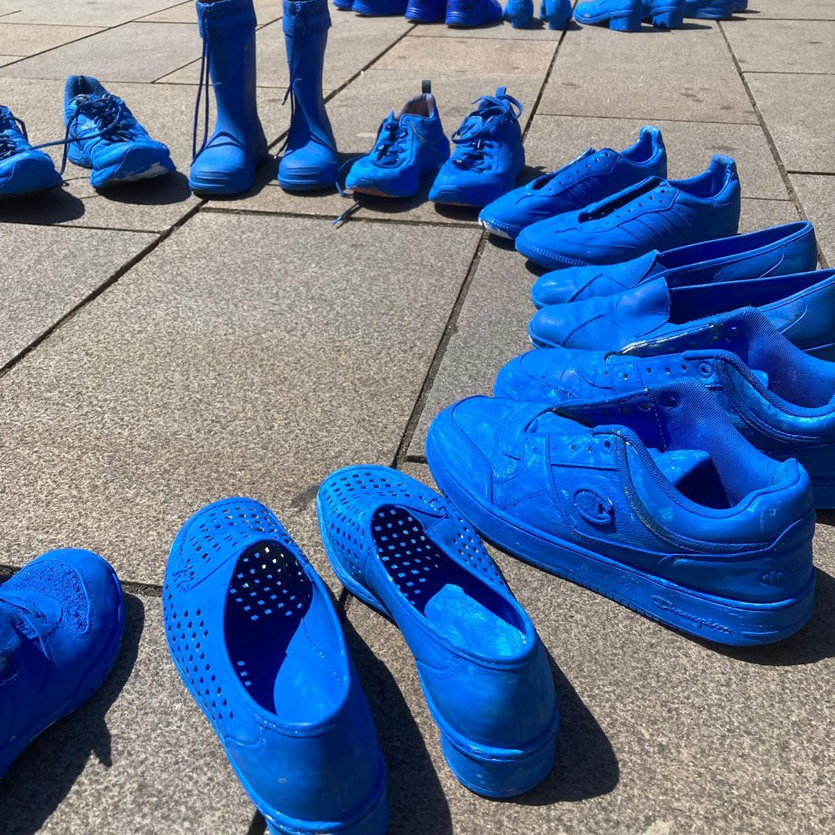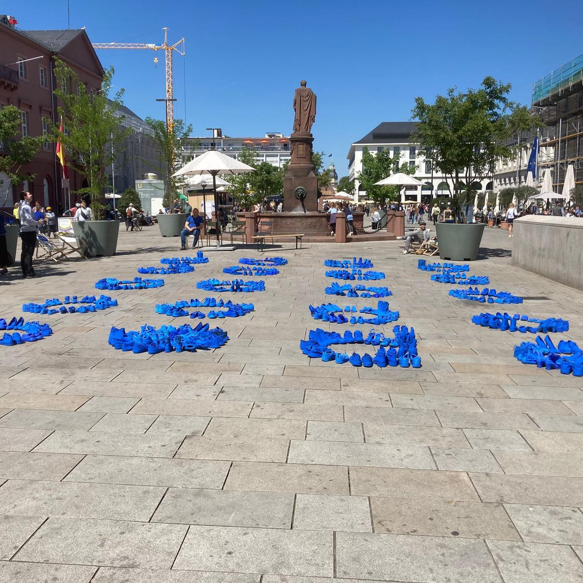 Am Samstag, dem 10. Mai 2025, lud der Blue Demonstration e.V. zu einer einzigartigen Symbiose aus Nachhaltigkeit, Umweltengagement und digitaler Kunst ein. Die Organisation präsentierte gemeinsam mit Schulen und sozialen Jugendeinrichtungen auf dem Karlsruher Marktplatz erstmals die interaktive Streetart-Installation „Web address made of seventeen climate circles“. Der Heidelberger Medienkünstler Nicola Pragera hat die Installation eigens für den Event konzipiert – ein nachhaltiges Kunstwerk für den Umwelt- und Klimaschutz, das die Grenzen zwischen analoger und digitaler Welt verwischt. Die Installation besteht aus 17 kreisrunden Climate-Circles, die aus hunderten blauen Schuhen zusammengesetzt sind. Jeder Kreis steht dabei für eines der 17 Ziele für nachhaltige Entwicklung der Vereinten Nationen (Sustainable Development Goals). Der Künstler wird daher 17 Monate lang jeden Monat ein anderes nachhaltiges Ziel der SDGs digital interpretieren und es mit der Webadresse der Installation verlinken. Für die Installation wurden in Zusammenarbeit mit der Stadt Karlsruhe sowie Schulen und sozialen Jugendeinrichtungen alte, kaputte Schuhe gesammelt und blau bemalt, die nun in der digitalen und analogen Kunst ein neues Leben erhalten. Jedes Paar blau bemalter Schuhe steht dabei zusätzlich für eine 8-tägige Maßnahme zur CO₂-Einsparung, die von der Person, die die Schuhe bemalt hat, umgesetzt wurde.