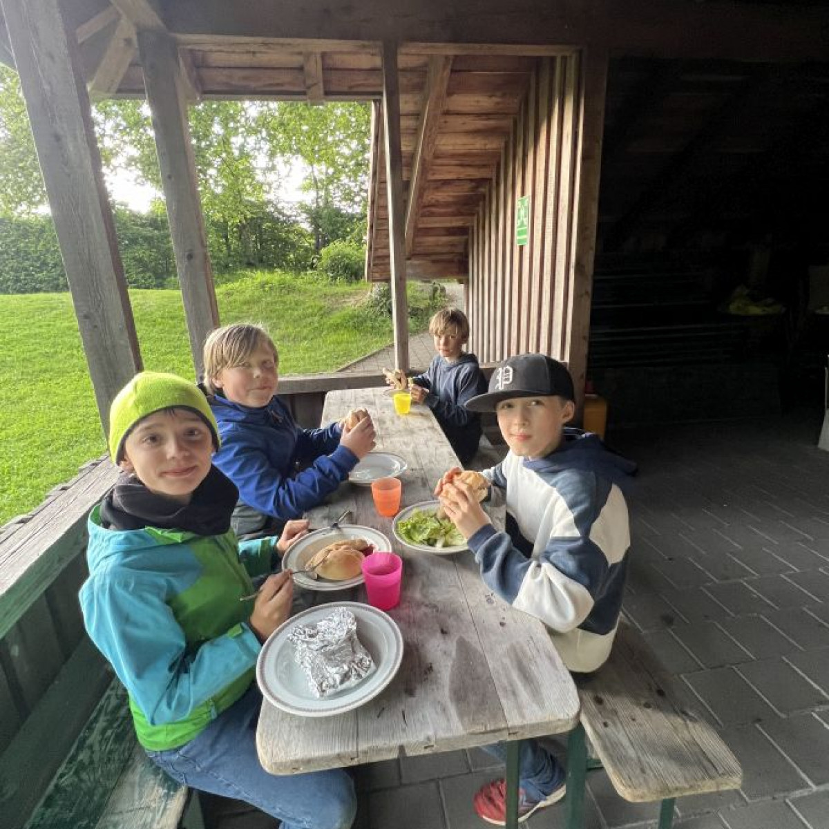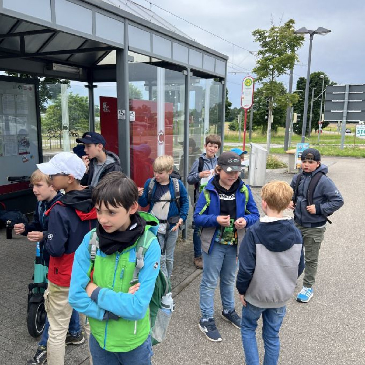 Ungefähr 15 Minuten später sind wir zur Bushaltestelle gelaufen. Und an der Bushaltestelle haben wir ganz vielen Leuten gewunken, bis endlich unser Bus kam. Wir mussten noch dreimal umsteigen (Bahn – Bus – Bus), bis wir gegen 12.15 Uhr in Hohenwettersbach ankamen. Natürlich haben wir sofort unsere Eltern begrüßt und ihnen alles von unserem aufregenden Landschulheim erzählt. Am Abend haben wir dann das Spiel Deutschland-Schottland geschaut und sind danach in einen tiefen Schlaf gefallen. (Felix)