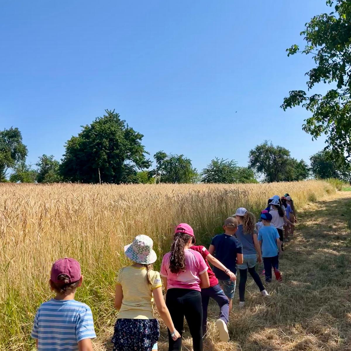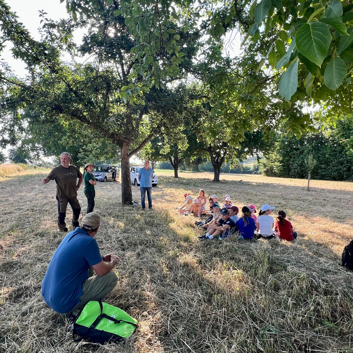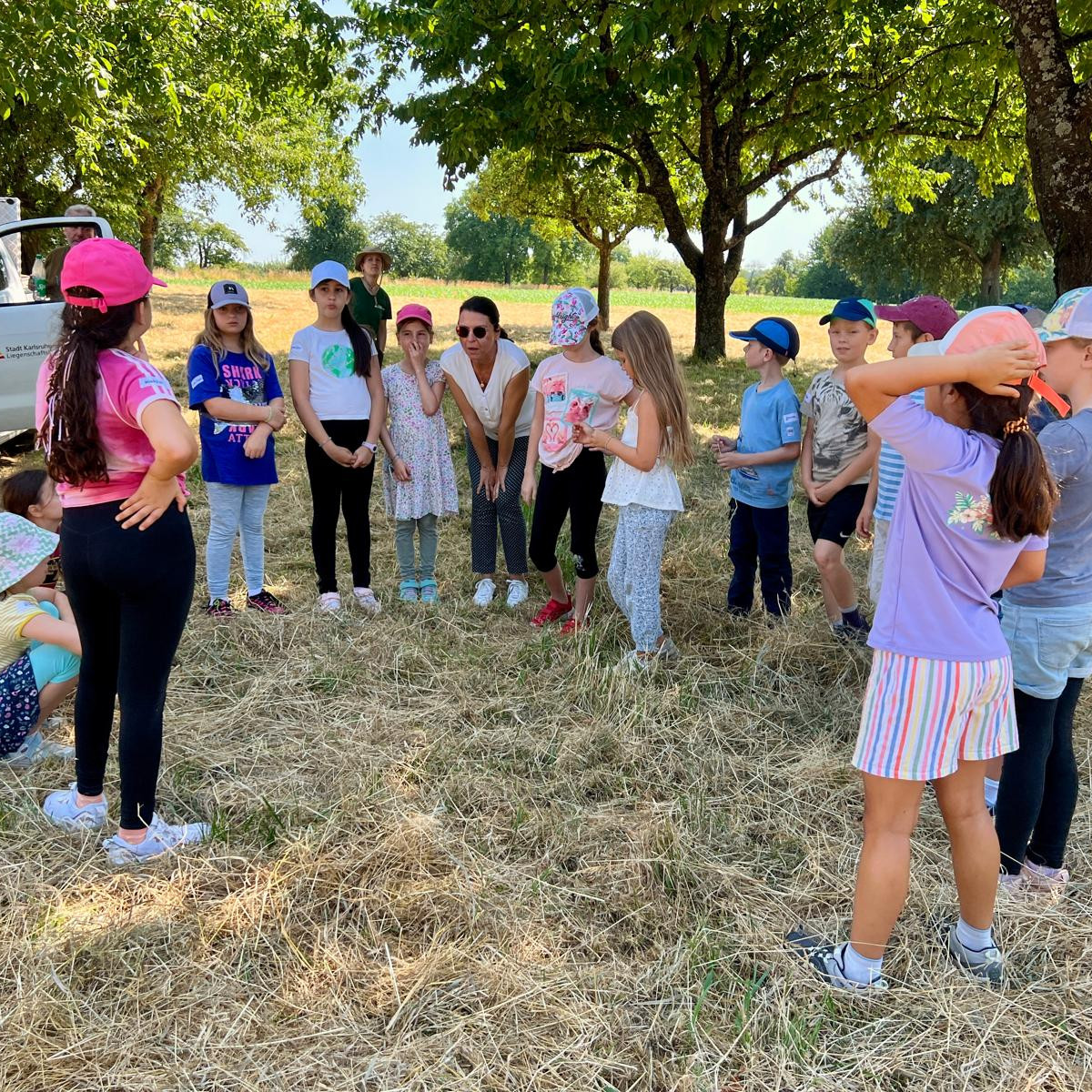 Am 4. Juli 2025 war die Klasse 3a unterwegs zu einem besonderen Ausflug: Es ging auf eine richtige Streuobstwiese – mitten in die Natur!