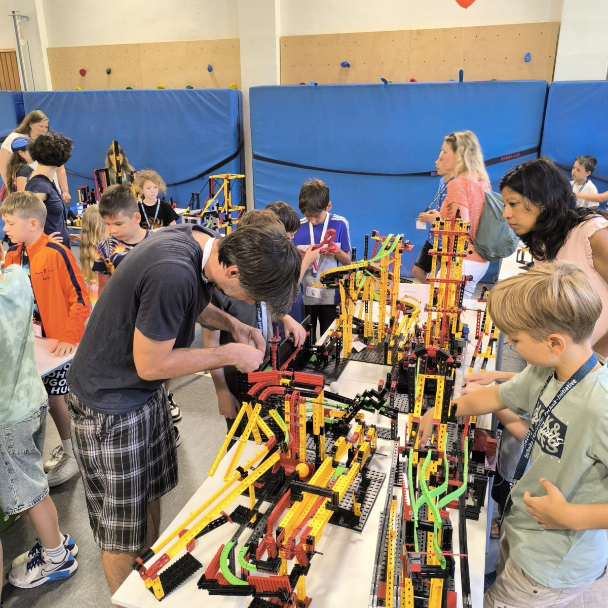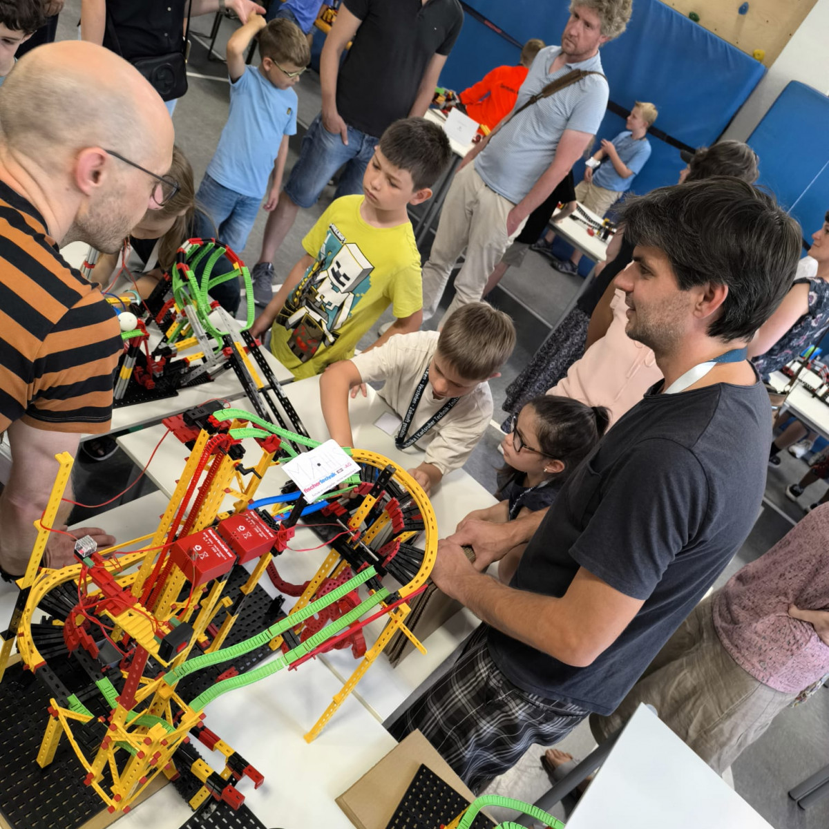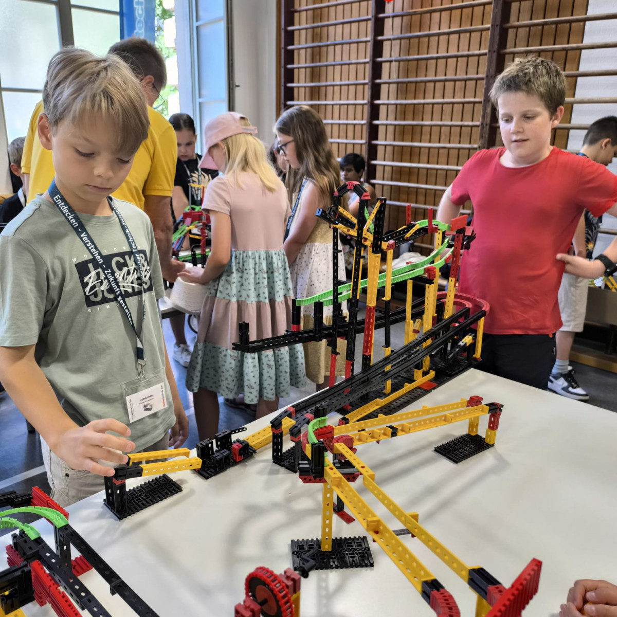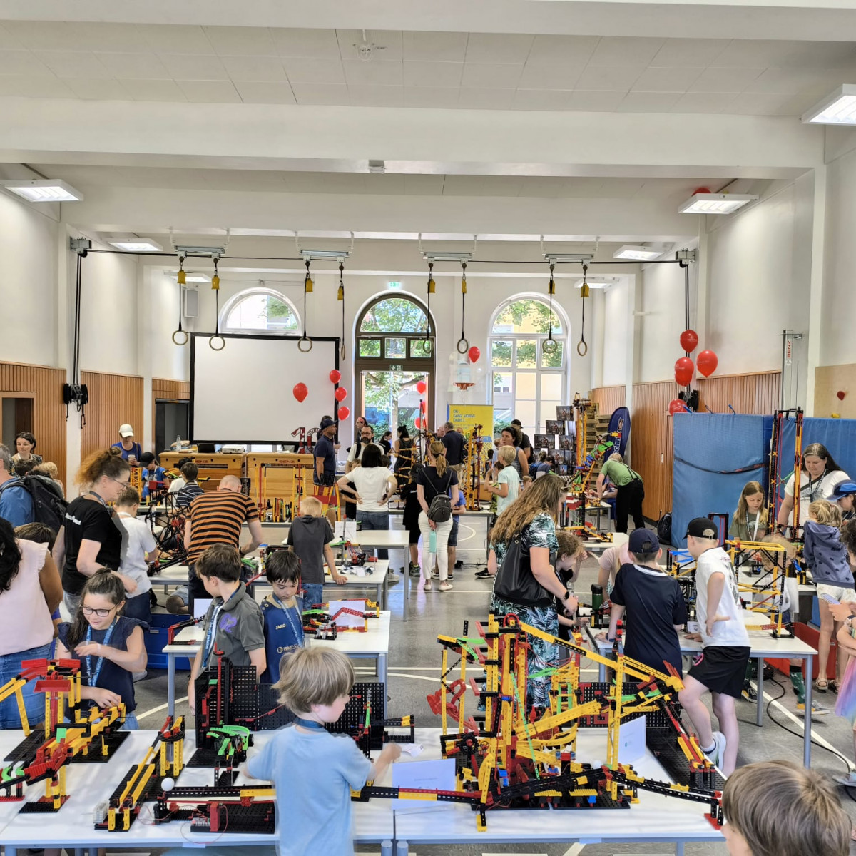 Junge Tüftlerinnen und Tüftler unserer Schule haben Großes geschafft: Am 28. Juni 2025 wurde eine neue Bestmarke aufgestellt – die längste Tischtennisballweitergabemaschine Deutschlands aus Fischertechnik misst nun beeindruckende 96,70 Meter!
