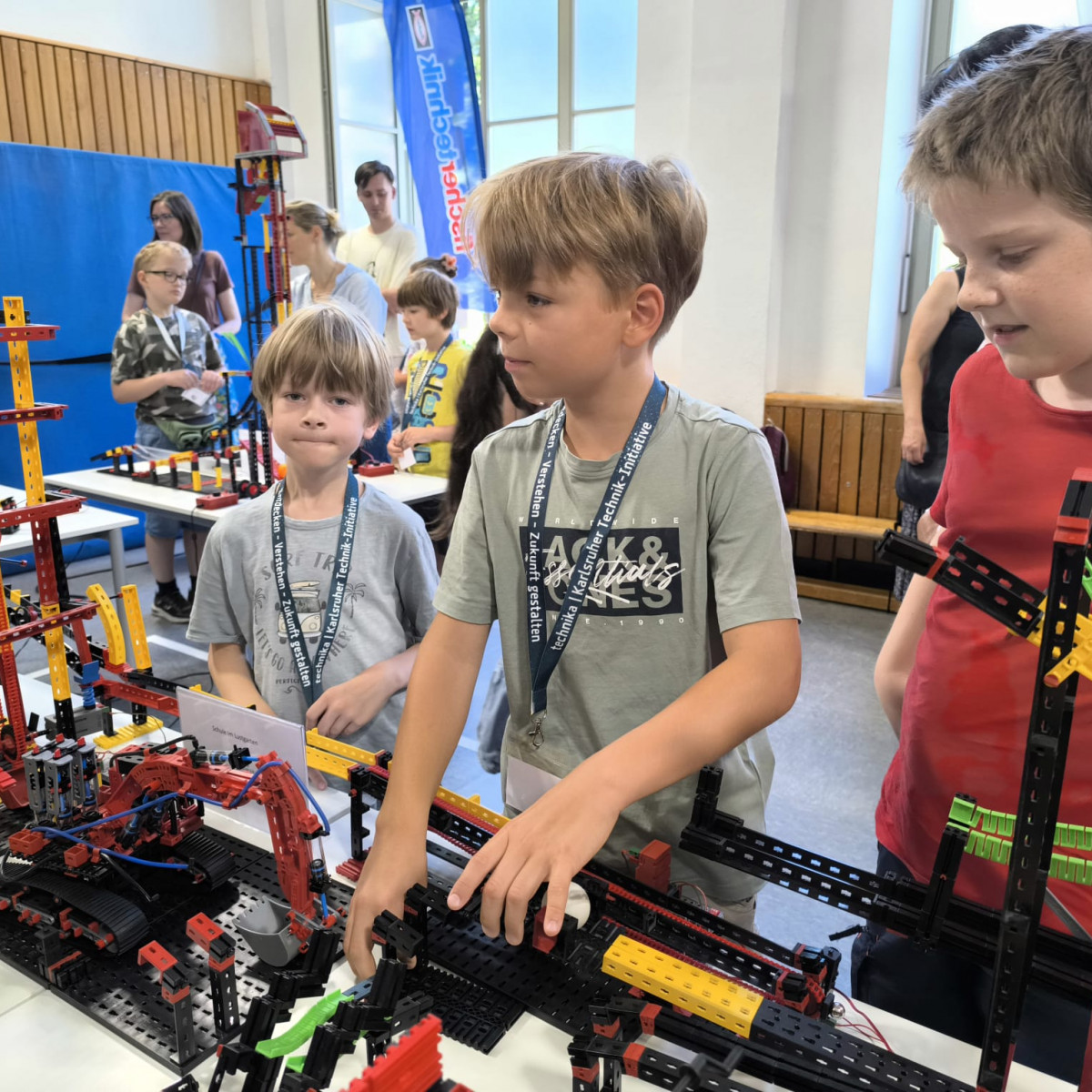 Mit viel Eifer, Kreativität und Teamgeist haben die Kinder der Fischertechnik-AG in den vergangenen Wochen ihre eigenen Module geplant, gebaut und getestet. Diese wurden schließlich Teil der riesigen Gemeinschaftsmaschine, die beim großen Rekordversuch zusammengefügt wurde – mit Erfolg! Unsere Schule hat damit stolz zum Weltrekord beigetragen.